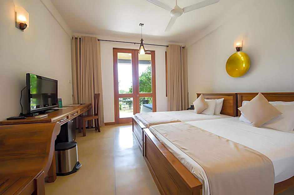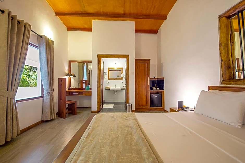 After a day of exploring the lush surroundings and spotting majestic elephants in Udawalwe National Park, there's no better place to relax than by the hotel’s outdoor pool. Reserved for adults only, the pool’s shallow end and scenic views provide the perfect setting for unwinding under the sun or enjoying a peaceful dip after your adventures. Whether you're lounging with a good book or taking a quick cool-off, it’s a serene spot to soak up the natural beauty that surrounds you.